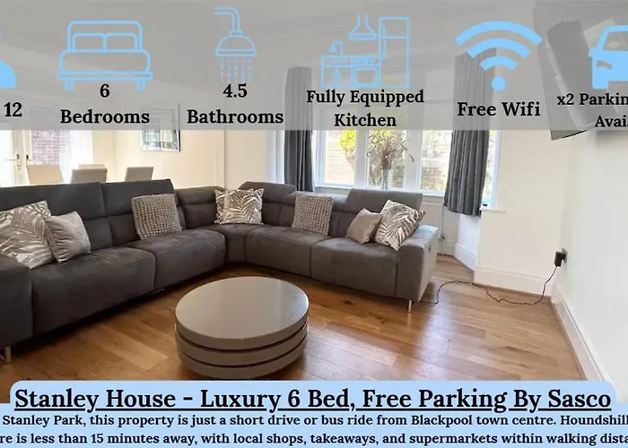 The villa includes a dining area with a microwave oven, an electric kettle, and a refrigerator. The restaurant No 10 Ale House is located about 600 metres away and serves Asian dishes. Blackpool International airport is located 5 km from Stanley House - Luxury 6 Bed, Free Parking Villa.